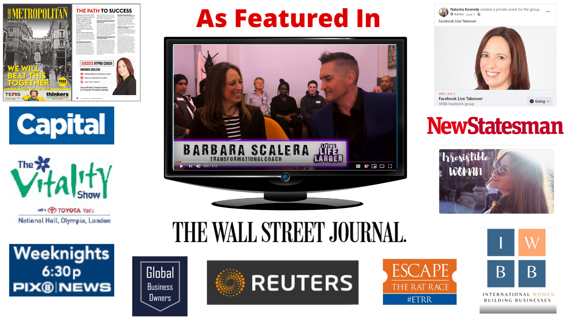 Hi, I'm Barbara Scalera, The Success Hypno Coach, Master Hypnotherapist and Master NLP Success Coach, and this is me during my corporate career, living the corporate jet life as a 6-figure salary communications expert, speaking to thousands on stages and screens from New York to London to Paris. I then followed my growing passion and talent for developing the self-esteem and success of my teams, to become a full-time coach.